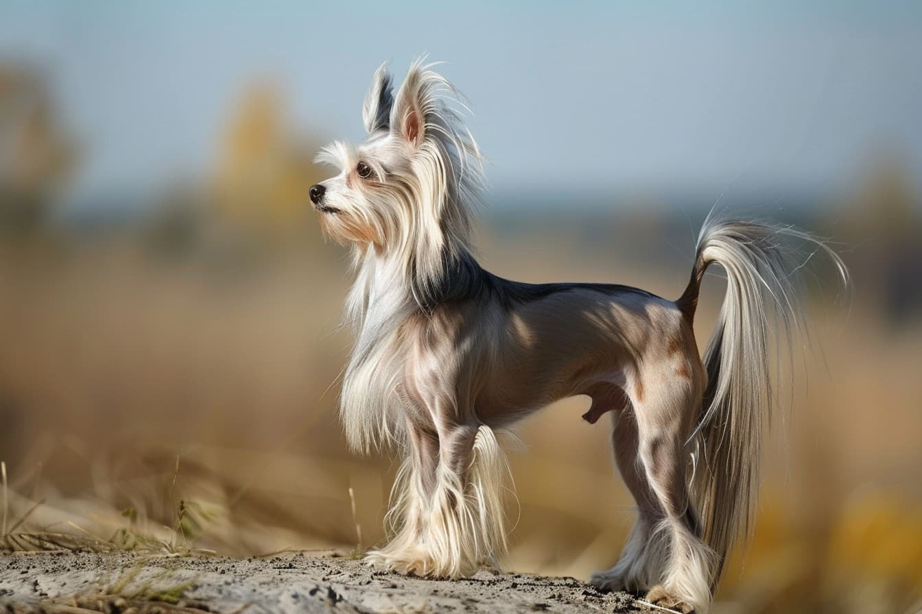 Chinese Crested: Der Chinese Crested ist eine außergewöhnliche Rasse, die in zwei Varianten vorkommt: haarlos und Powderpuff. Bei der haarlosen Variante wächst Haar nur auf dem Kopf, den Pfoten und dem Schwanz, während der Powderpuff eine dünne Felldecke hat, die sehr wenig haart. Diese Rasse erfordert besondere Aufmerksamkeit für die Hautpflege, insbesondere bei den haarlosen Hunden, um sie vor Sonne und Kälte zu schützen. Sie sind bekannt für ihre anhängliche und aufmerksame Art, genießen körperliche Aktivitäten wie Spaziergänge, sind aber auch für ihre ruhige Art im Haus bekannt.
