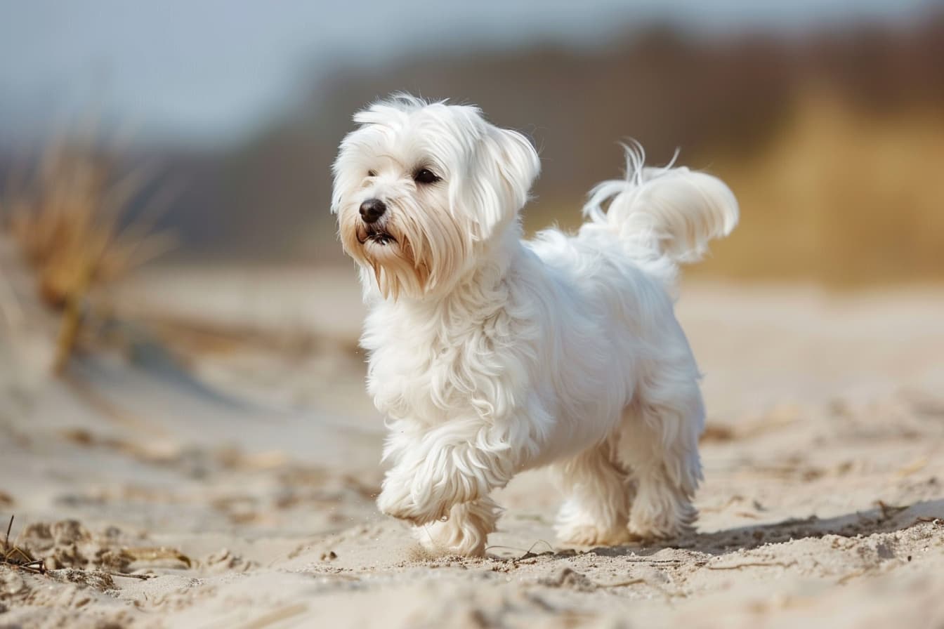 Maltese (Malteser): Der Malteser, eine der ältesten Hunderassen, ist bekannt für sein langes, seidiges und wenig haarendes Fell. Seine Pflege umfasst regelmäßiges Bürsten, um Verfilzungen zu vermeiden, sowie gelegentliche Bäder, um Schmutz und Ablagerungen zu entfernen. Trotz ihrer zarten Erscheinung sind Malteser robuste, lebhafte Hunde, die für ihre Anhänglichkeit und Liebe zu ihren Menschen bekannt sind. Sie eignen sich hervorragend als Schoßhunde und sind gleichzeitig lebhaft genug, um als spielfreudige Begleiter zu agieren.